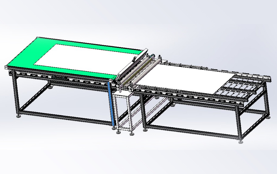 本生產(chǎn)線依據(jù)用戶(hù)需求,進(jìn)行“量身”設(shè)計(jì),由層壓前鋪設(shè)傳輸線;通過(guò)不同機(jī)構(gòu)的傳輸、轉(zhuǎn)運(yùn)、變向、定位、旋轉(zhuǎn)/釋放實(shí)現(xiàn)組件封裝過(guò)程的流水化操作,可提高單位組件生產(chǎn)效率。